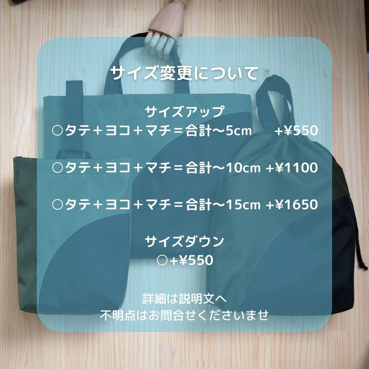 サイズ変更ご希望で、不明点がある場合はメッセージ機能で購入前にご質問をお願いいたします