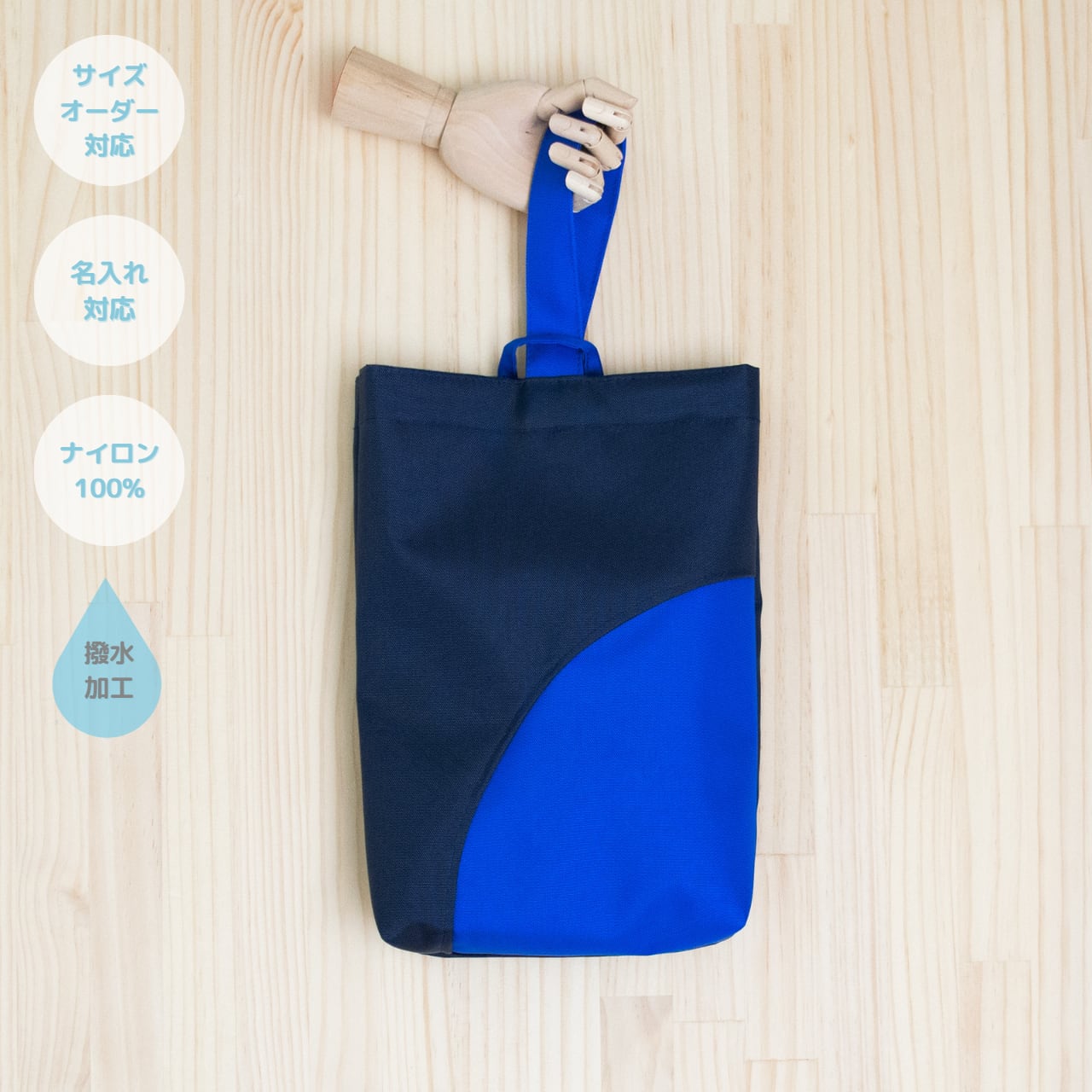 水につよい!バイカラーのシューズバッグ【こんとあお】