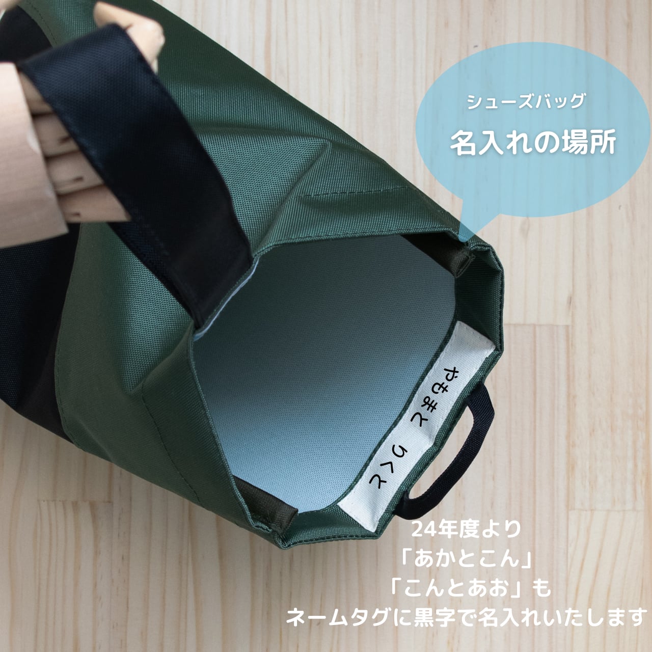 2024年度よりバッグに縫い付けたネームタグ(巾2cm×長さ11cm)に名入れをいたします