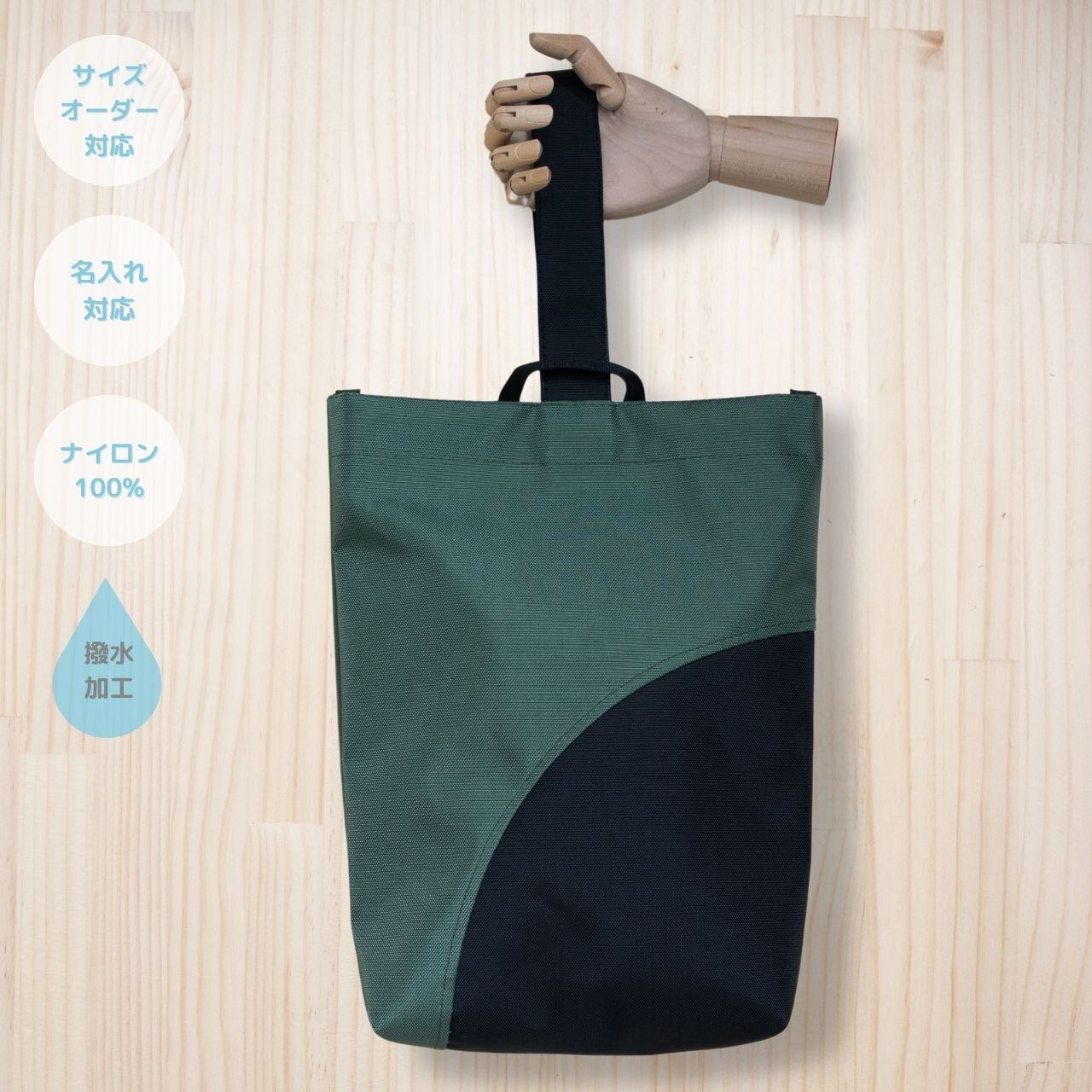 水につよい!バイカラーのシューズバッグ【カーキと黒】