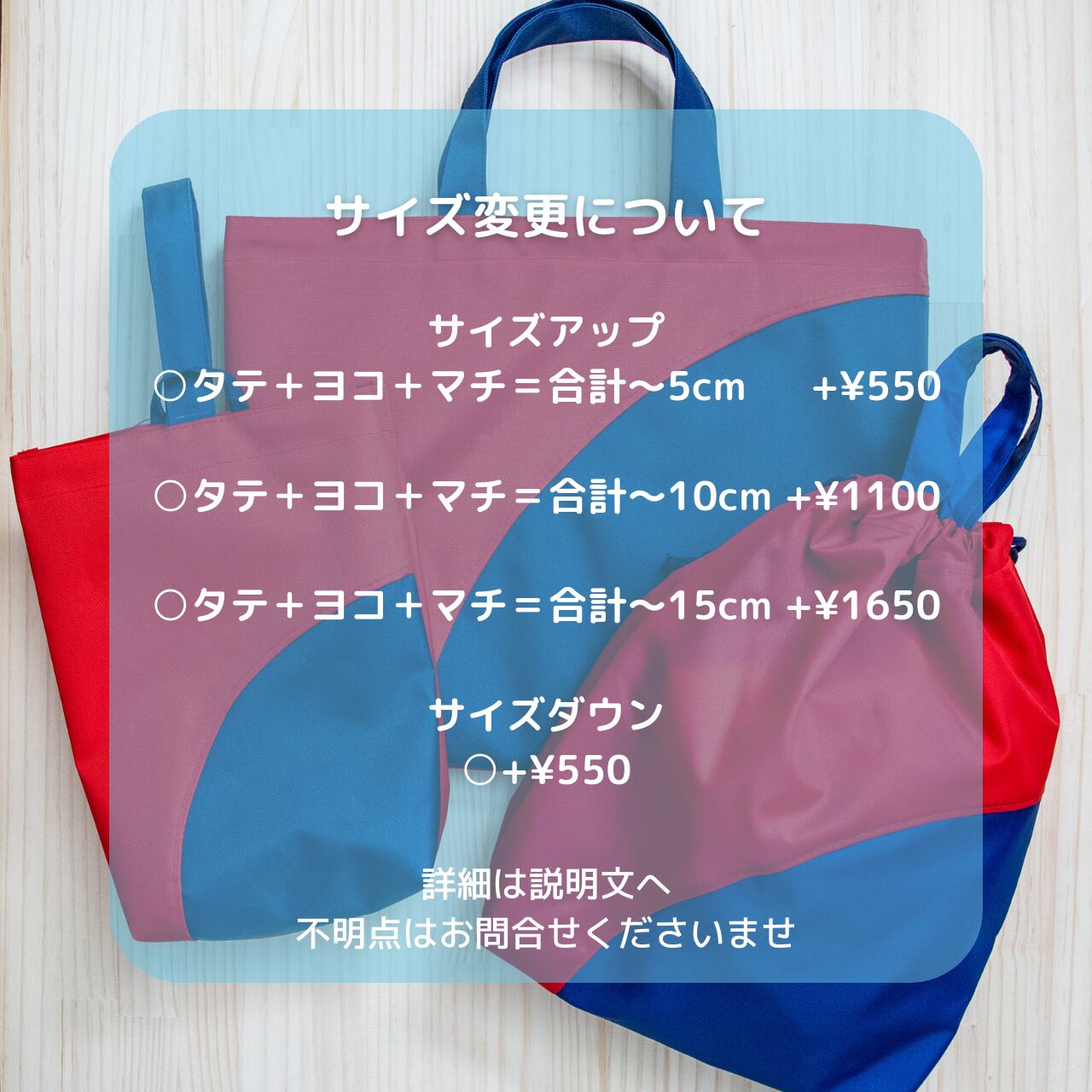 ※例えばレッスンバッグ+シューズバッグ+体操服入れ全てをサイズアップ希望の場合は+長さcmの総合計でオプション金額が決まります